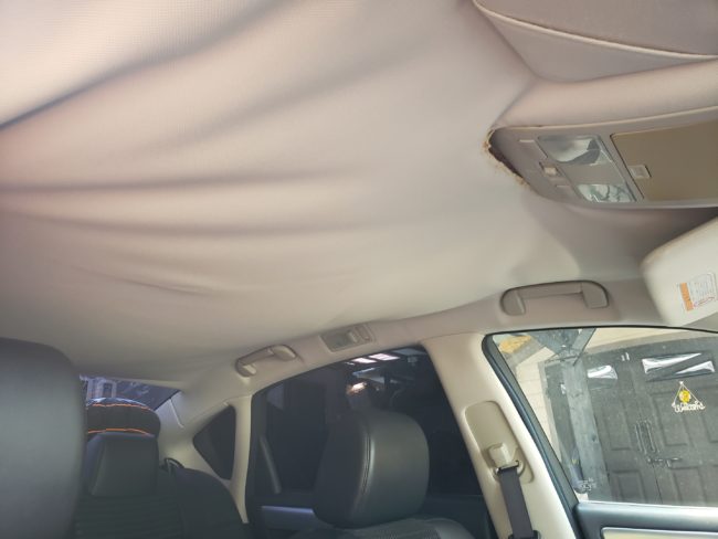 フーガも欧州車と同じように天井生地が剥がれてしまい、垂れ下がってしまいます。